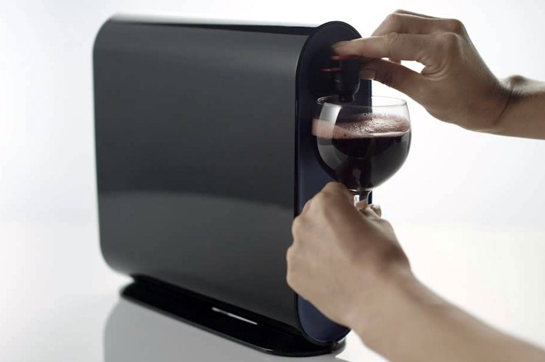 For a more refined way to serve wine from a carton, Wine+ was developed and produced for Unikia in the late 2000s. It was designed with a unique spring system to counteract gravity, allowing wine to be poured from the top of the server. It was also built to withstand refrigerator temperatures, keeping white wine perfectly chilled.