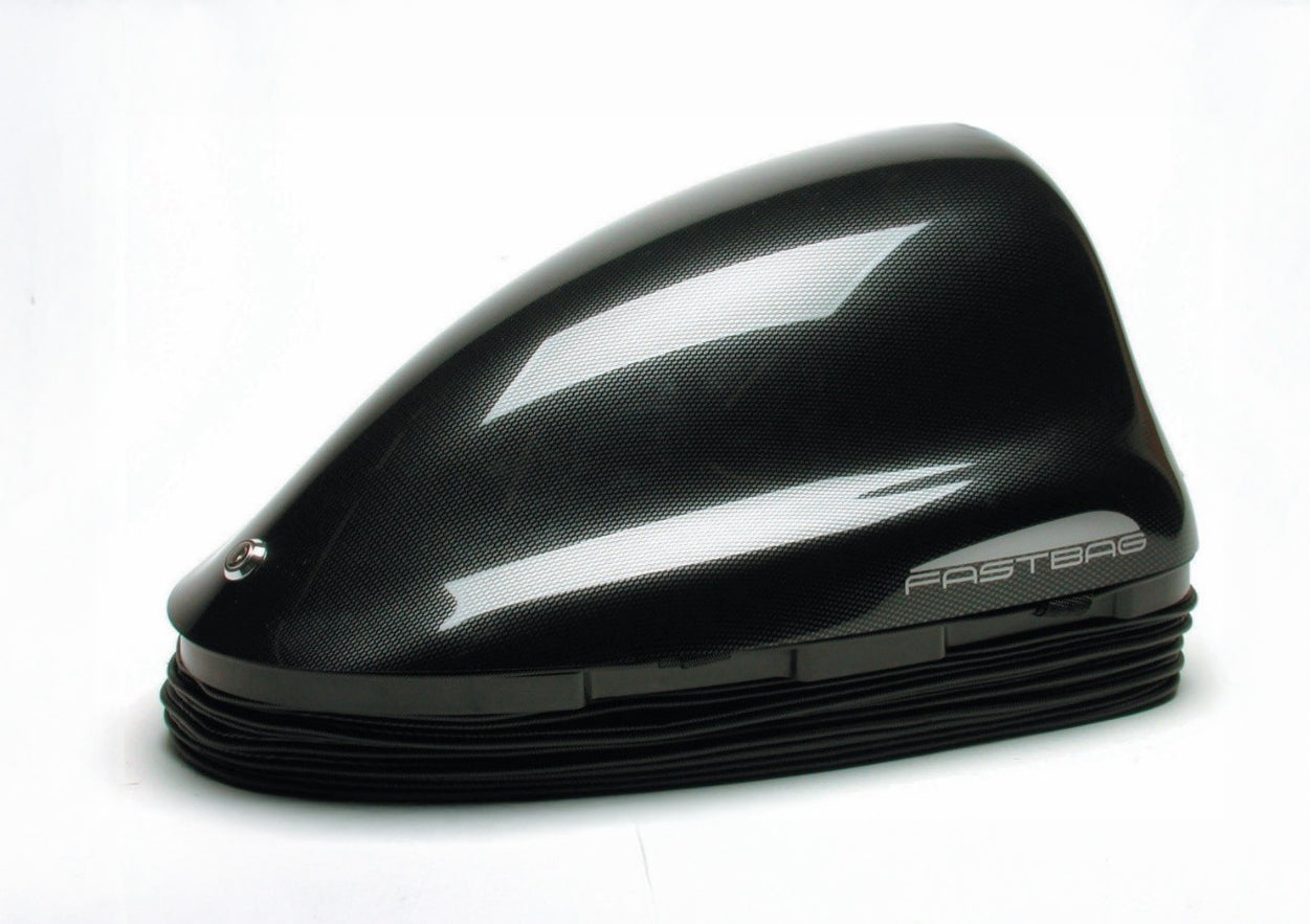 Fastbag is an aerodynamic bag for motorcycles that is designed to be both stylish, practical and aerodynamic. It attaches to the rear seat or fairing with straps and can be expanded vertically to provide additional storage space.